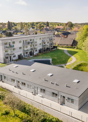 Rækkehusene og etageboligerne er udbudt i en totalentreprise og opført for den almene boligorganisation, Vivabolig, som bygherre.
