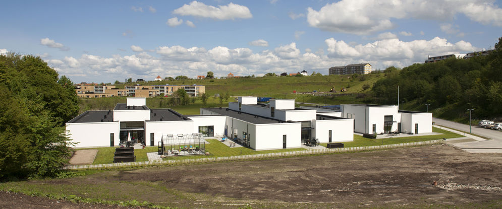 Bebyggelsens form og volumen er opstået ud fra tanken om en skulpturel bearbejdning af et stykke kridt. Formen bearbejdes rumligt, så der opstår volumener/former i forskellige højder. Tagfladen bearbejdes ligeledes skulpturelt med lystårne der trækker lyset ned i fællesrummet.