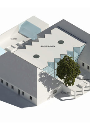 Revitaliseringen af Kirkens Korshærs Herberg, er et forslag, der bygger på, at en ny bygning forbinder de to eksisterende huse og bliver bebyggelsens nye, samlede fællesrum. Det er her man ankommer, modtages og indskrives og fællesrummet bliver bebyggelsens nye fælles spise/opholdsrum og dermed bygningens hjerte. Fællesrummet er rummeligt, og med en træbeklædt, svævende overetage, gives rummet karakter og definerer zoner med såvel højt til loftet som til hygge.